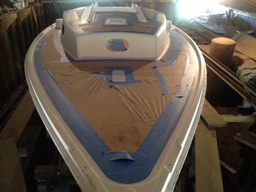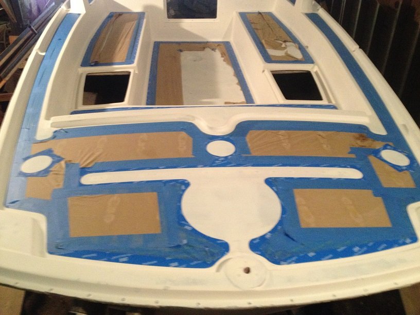 Next up was the nonskid taping and painting. Deck taped off for nonskid. IMG_3982.JPG Two cockpit hatches taped off. IMG_3983.JPG And a close up of a cockpit hatch. IMG_3987.JPG And a picture of the aft deck taping. IMG_3994.JPG And the cockpit area. IMG_3997.JPG The nonskid on the aft deck. IMG_399...