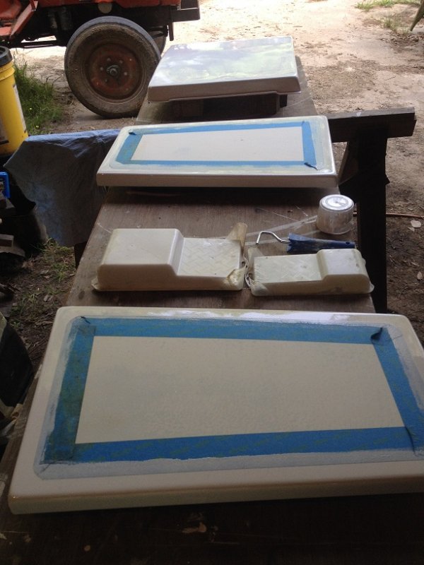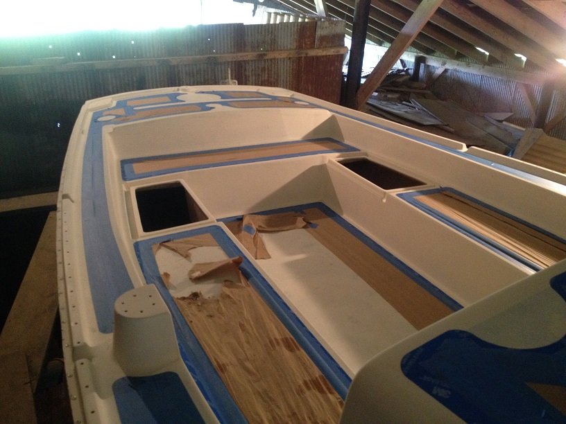 I think the picture in the last post of the cockpit locker lids actually were of them painted. The painted areas. First the foredeck. IMG_3970.JPG And the aft deck. IMG_3972.JPG And the cockpit area. IMG_3974.JPG And the cabin top. IMG_3980.JPG And finally the motor mount block. IMG_3969.JPG I let a...