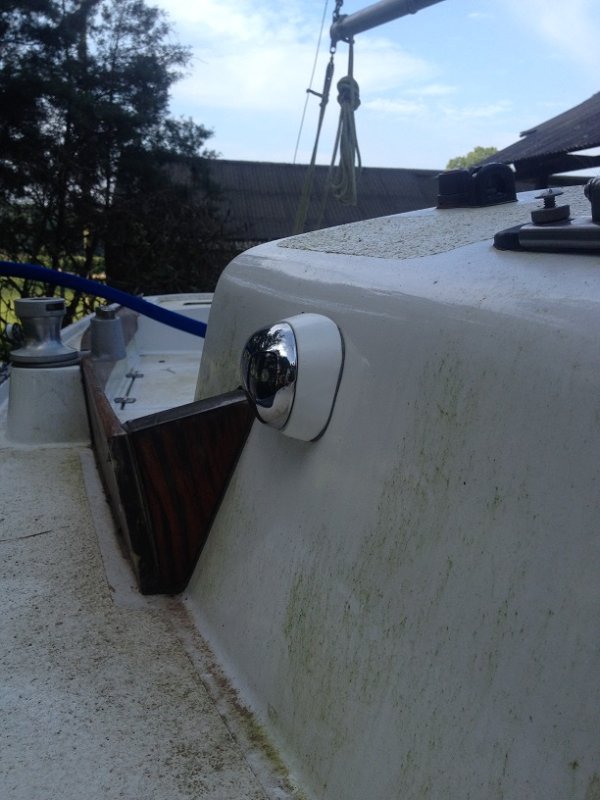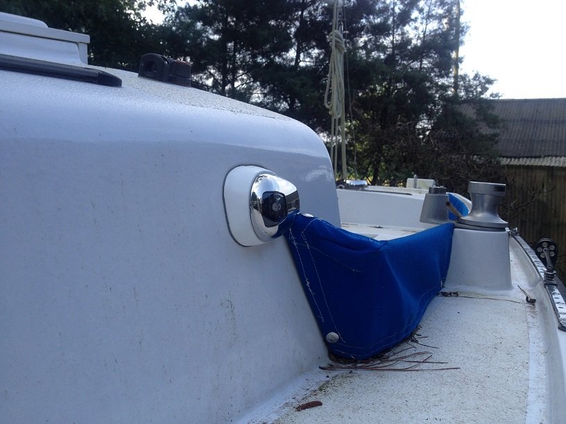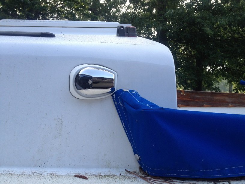 Here is the cleat epoxied in the hole in the V-berth and painted. IMG_4384.JPG The cover I made for it. IMG_4330.JPG And the cover in place. IMG_4383.JPG I built a box for the electric on/off switch, a three position breaker panel, a bilge pump switch and a charging port. IMG_4386.JPG And above it i...