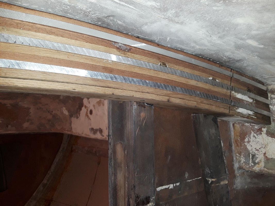 Currently all four supports for the beam to the bulkhead are only secured by screw, with no evidence of adhesive. Which to me seems inadequate but i guess has lasted 50+ years. Yet when i am out to sea this would weigh on my mind night and day in a blow. So I think epoxy and thru bolted would be more secure.