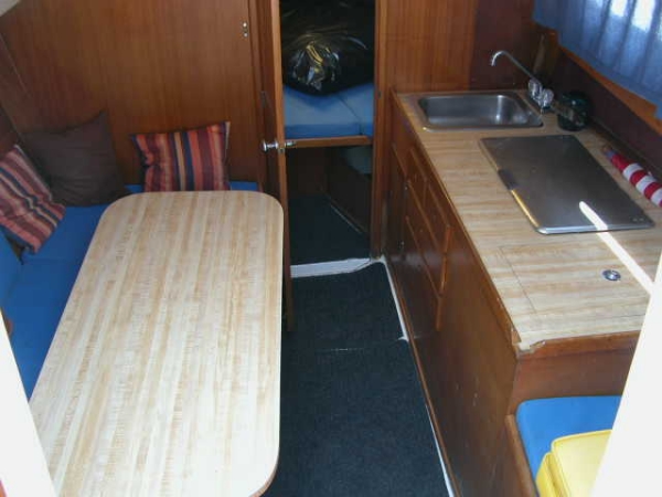 On your Bristol, can you tell if it had the "dinette" or the "standard" layout? Dinette had the galley all along the starboard side, plus a slightly dinette shaped table/settee on the port side. Standard had two small galley flats at the forward end of the saloon, followed by settees each side which ran partially under the cockpit. Neither had cockpit settee lockers, but the dinette plan did have a locker under the port side cockpit that was accessible through a small door in the bulkhead at the after end of the saloon. The dinette plan had more of a bulkhead mast support, while the standard had the more-typical mast beam over a passageway.