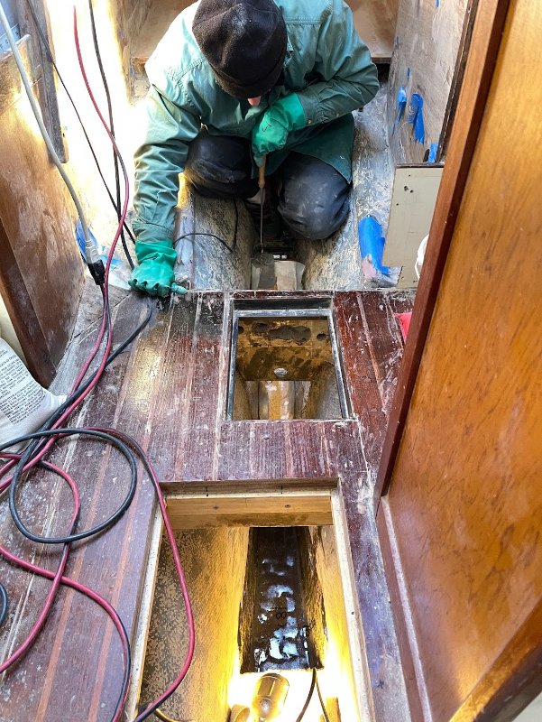 This is the first boat I've owned, and I was not particularly handy before starting this project. So, it's been a steep learning curve, to put it mildly. However, with James' guidance, it's been a great experience, and I can't wait to have the boat back in the water and under sail. Below are a few shots of our progress so far.