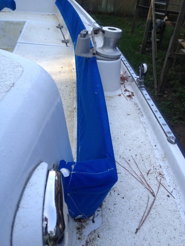I sewed up a cover for the Port combing board. I am still working on the Starboard one. Talk about drilling holes. I finally drilled one for the small bilge pump i am putting in. I installed the thru hull and attached the hose.