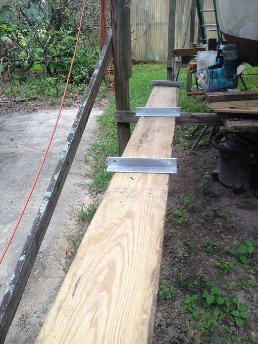Tomorrow I will glue a piece of carpet on the splice area then lag screw the bunk boards into place. I hope.