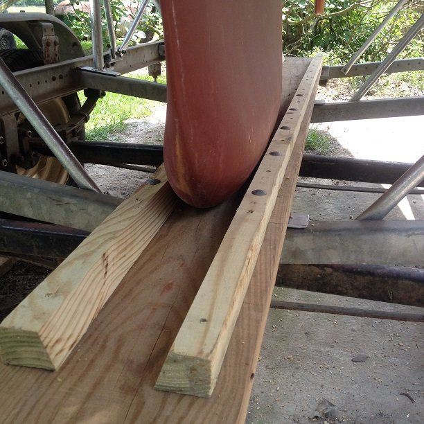 I have also tied the extension tubes in place. I had made some blocks, bolted to the trailer, for them to set in.