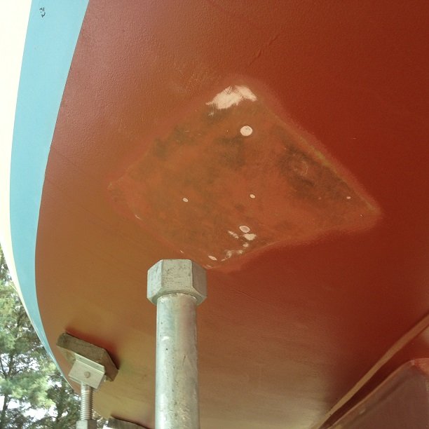 With the wood cradle out of the way I painted the spots I couldn't get with bottom paint. I had to take a couple of the uprights off temperately to get to the spots.