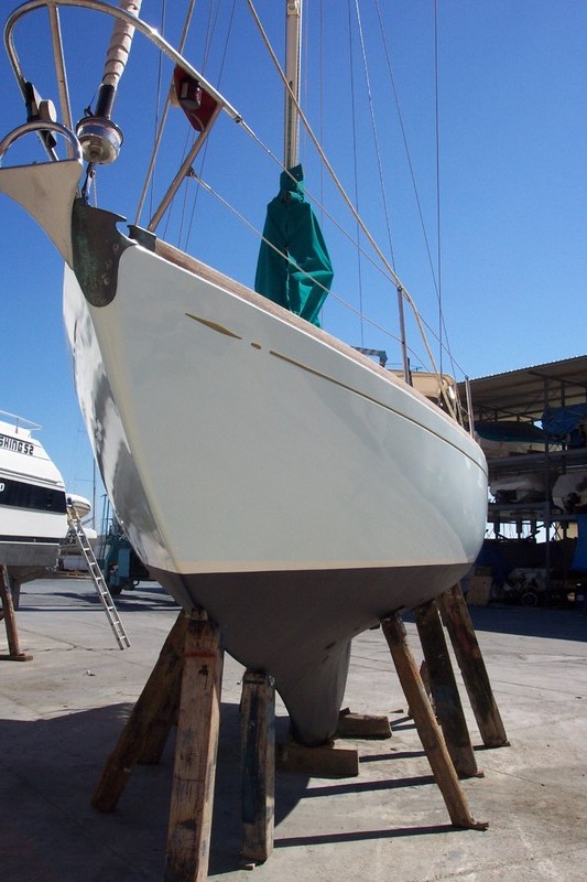 My problem is that my aft jackstands are too tall, so that the pads reach the topsides. Since I'd like to paint the topsides, I have to do something about the height of the existing jackstands. It's an easy fix to shorten them (just saw off part of the tube into which the threaded bolt goes) but it would require removing them. This would be fairly simple if I had another set of jackstands, but I don't.
