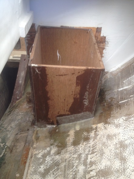 Last fall I got the two battery boxes epoxied in place. One is on the port side and the other is on the starboard side. A couple of pictures from then.